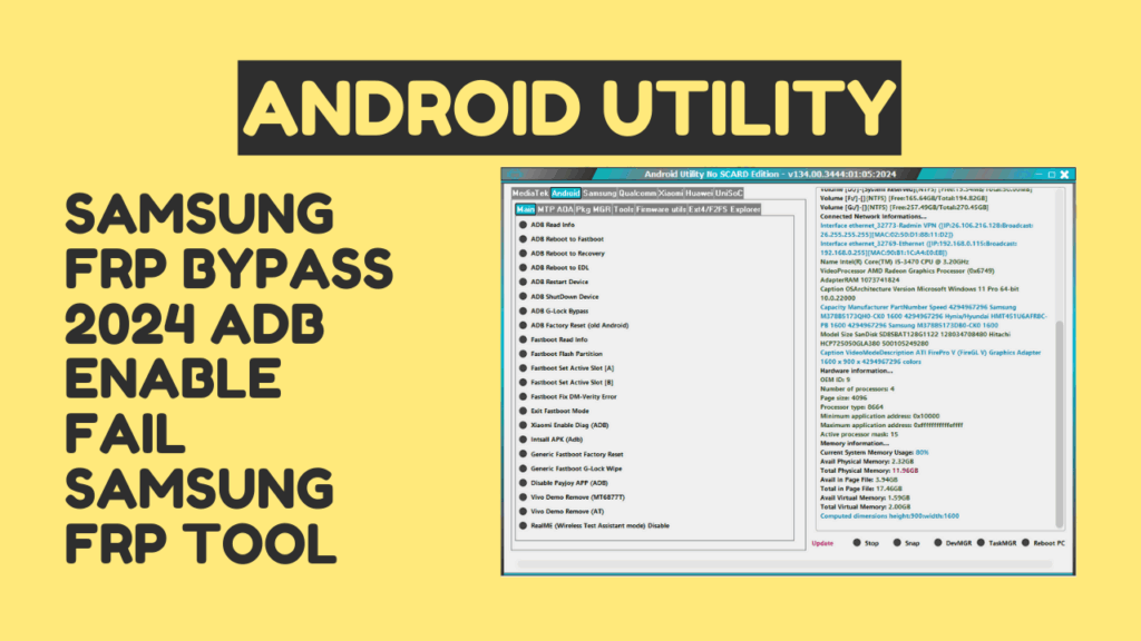 • Clear Cache and Data: Clear the cache and data of the Android Utility.