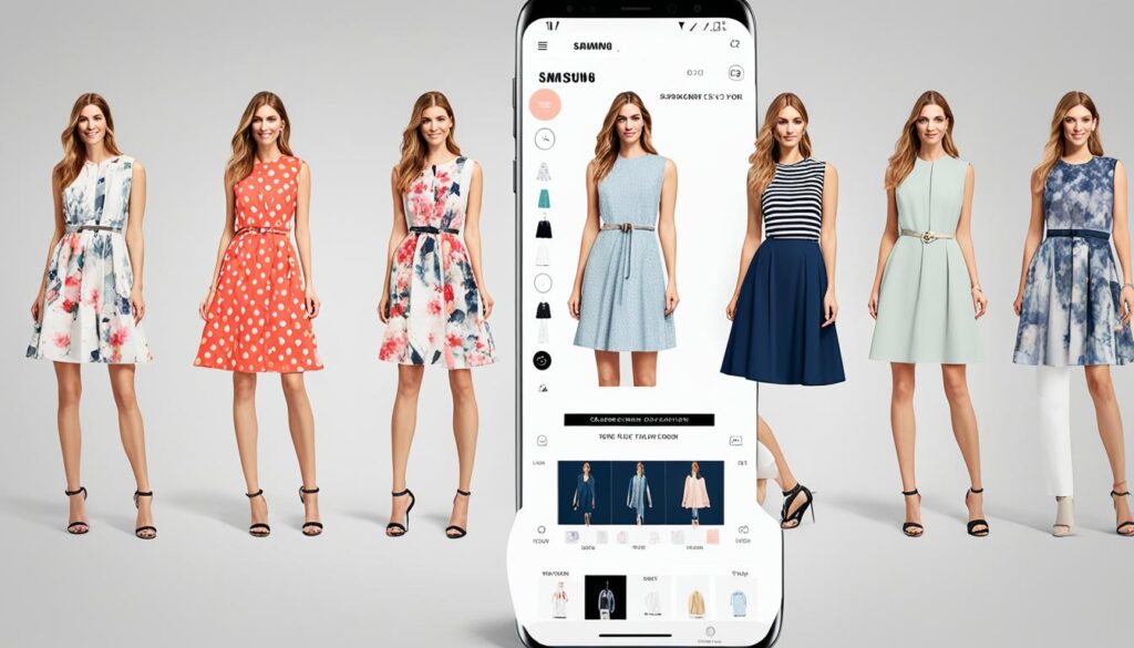 [Image: Samsung Dressroom App Interface Showing Virtual Fitting]
