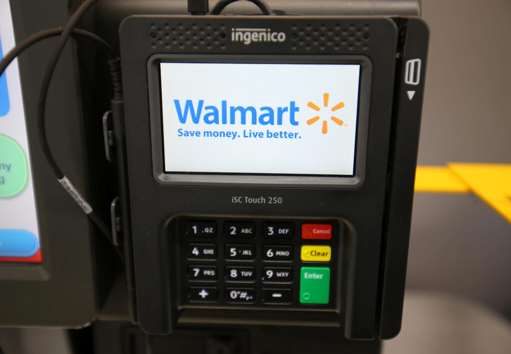 [Image: Person looking concerned while standing outside a Walmart store.]
