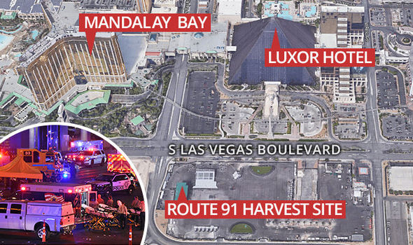 [Image: Aerial view of the Las Vegas Strip highlighting the Mandalay Bay and Route 91 Harvest festival grounds.]